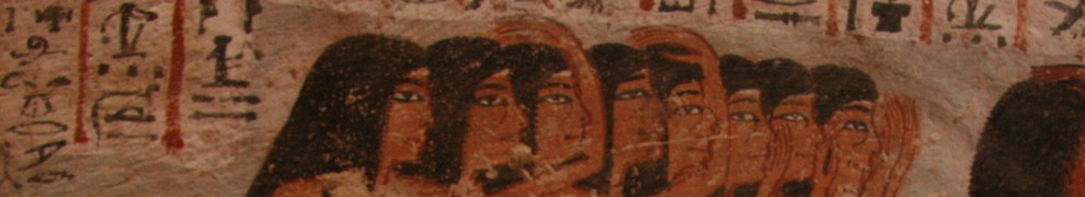 The two arms over the head is a very normal posture among mourners in Ancient Egypt. Painting from the tomb of Roy in Dra Abu el-Naga. XVIII Dynasty. Photo: Mª Rosa Valdesogo Martín.