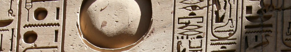 Head-dress of Khonsu with full moon over the crescent. Relief from the temple of Khonsu in Karnak. XIX Dynasty. Photo: Mª Rosa Valdesogo Martín.