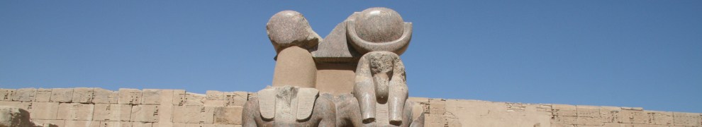Comparison of image of Hathor from Deir el-Bahari (Photo: http://www.1worldtours.com) and lunar head-dress of Thot in Medinet Habu (Photo: Mª Rosa Valdesogo Martín)