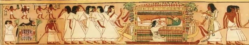 Cortège with the common mourners, the deceased’s wife and the two Drty in the role of Isis and Nephtys. Papyrus of Nebqed. Musée du Louvre. XVIII Dynasty. Photo: http://www.eu.art.com