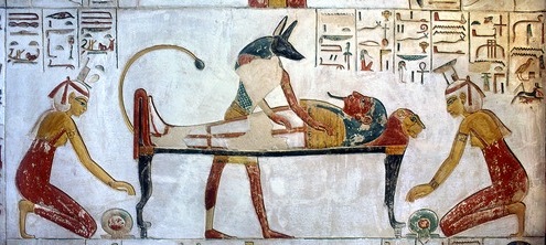 Isis and Nephtys at both extremes of the corpse with shen rings. Tomb of Siptah. XIX Dynasty. Valley of the Kings. Photo: www.thethebanmappingproject.com