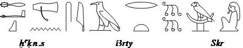 Regarding the i3rty, the dual form and the hair determinative make us think of the two mourners Isis and Nephtys. I3r means « sadness » or « mourning » [8]. R.O. Faulkner translated the term i3rr iArr as “weakness of the eye” or “weakness of the heart” [9]. On the other hand, i3rt  iArt is also an Egyptian expression that designates the uraeus snake of Re[10] ; so we could also consider that the i3rty would be the two uraei of Sokaris, which will be shaved.