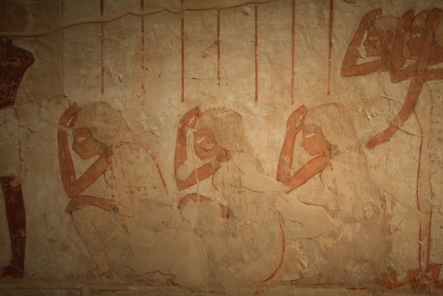 Funerals of Sobekmose with the two mourners (or two kites) with no mane of hair. Relief from the tomb of Sobekmose in el-Rizeikat. XVIII Dynasty. Photo: www.blognaver.com