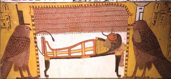 Isis and Nephtys as the two kites. Painting from the tomb of Sennedjem in Deir el-Medina. XIX Dynasty. Photo: http://www.osirisnet.net