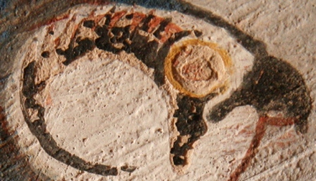 Tekenu wrapped in a shroud and in foetal position over a sledge. Painting from the tomb of Ramose in Gourna.XVIII Dynasty. Photo: Mª Rosa Valdesogo Martín.